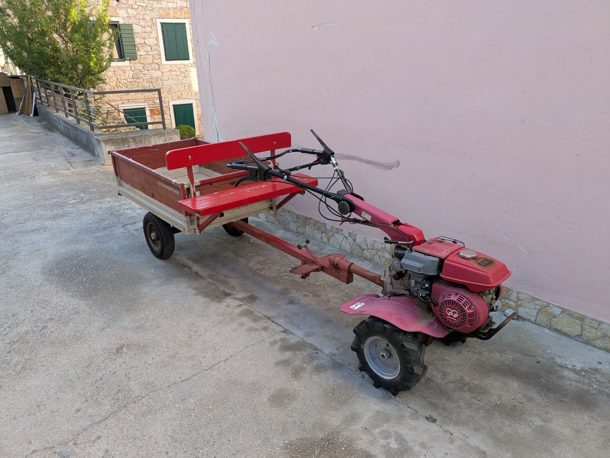 It’s small, so there are no cars, just bikes and the occasional golf cart, and a local contraption that looks for all the world like a box trailer being drawn by a lawn mower. The church bell rings out, as it must do every day here.