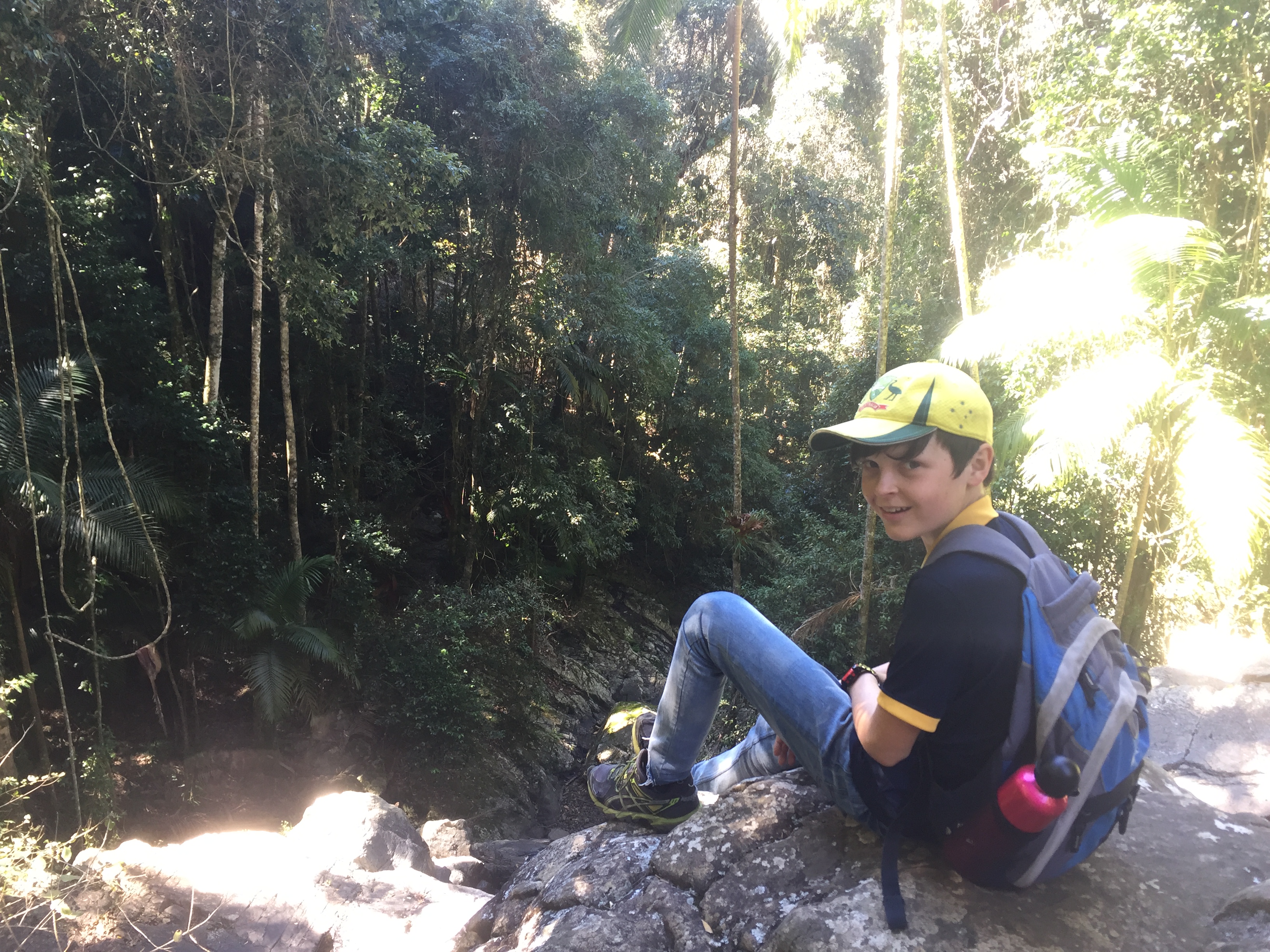 Once we made the climb to Mt Glorious, we left the car at Maiala Picnic Area and wandered the 4.something km Rainforest and Greene’s Falls trails. It was, it has to be said, an absolutely stunning Brisbane winter day, and the walk was a joy. Beautiful forest, easy walking trails, kids chattering away (apart from the odd “Dad I’m hungry” call that seems to accompany just about every family adventure). We clambered down the rocks at the Falls, balanced our way along a 30m fallen tree, played, explored and then back at the picnic area sat in the sun, enjoying lunch and good company.